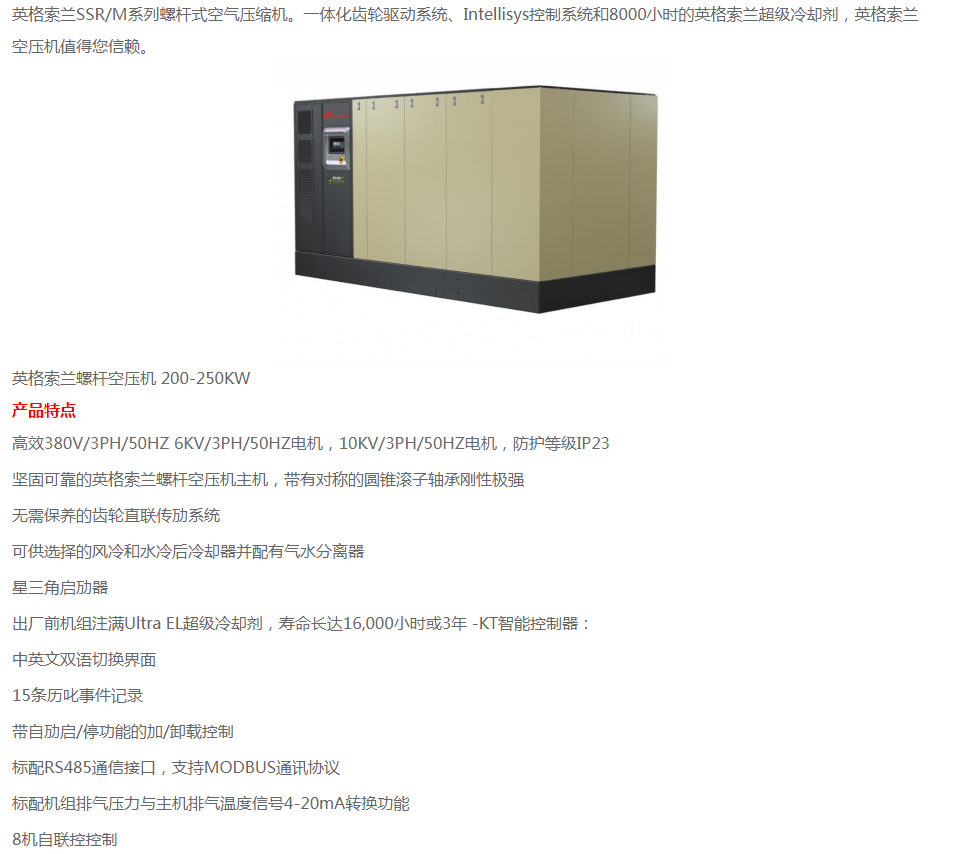 英格索蘭螺桿空壓機 200-250KW